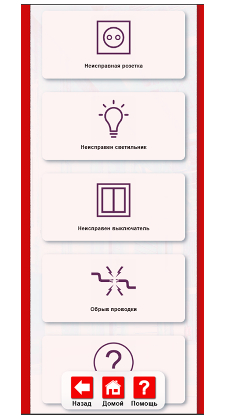 Карточки неисправностей категории Электрика и Освещение